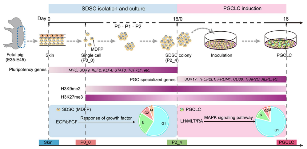 猪SDSCs在体外转分化为PGCLCs的机制示意图