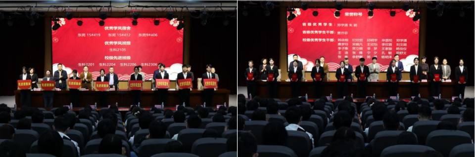发言结束后,举行表彰颁奖仪式,表彰在学生工作、科创竞赛、社会实践等方面有突出表现的集体和个人。
