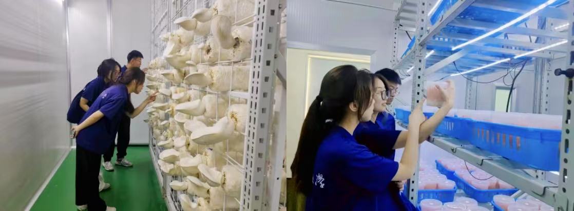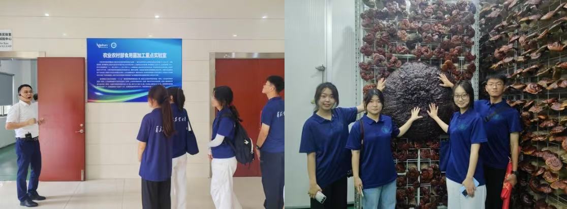 随后,团队走进农业农村部食用菌加工重点实验室,在食用菌工厂化栽培试验区见识了30余种食用菌菇,包括能在-20℃生长的寒带灵芝和耐高温的热带木耳。实验室研发的高产灵芝新品种,孢子粉产量显著提升,已在多个省份推广种植数万亩,带动了上万农户增收,户均年增收数万元。团队成员崔智恺边记录边感叹:“科技是引擎,把实验室的成果转化为田间地头的生产力,这才是产业振兴的核心动力。亲眼看到这些技术如何实实在在惠及农民,对我们启发太大了。”