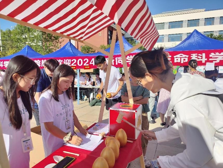 2024级新生在志愿者的带领下到学院报到,领取校园卡、办理住宿手续,顺利完成入学报到工作。志愿者们主动为新生入学提供指引和帮助,以热情传递温暖。新生们领取学院精心准备的新生大礼包,参与欢乐砸金蛋、盲盒送惊喜、打卡秀风采的活动,在打卡墙下,收获人生中这份独一无二的时光印记。由科研成果转化产品香菇脆片、蓝莓酒、发酵羊酸奶等组成的生科特色展区,更是吸引了前来报到的一众新生和家长,大家积极观摩品尝,将入学体验感拉满。