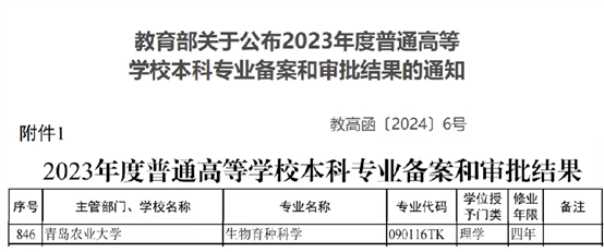 2024年,学院“生物育种科学”专业获教育部批复