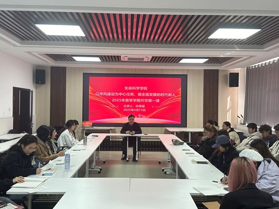 4月15日,suncitygroup太阳新城党委书记孙景福在生物楼C312以“以学风建设为中心任务,做全面发展的时代新人”为学院学生讲授2025年春季学期开学第一课,学院生物科学专业2301班学生参加。