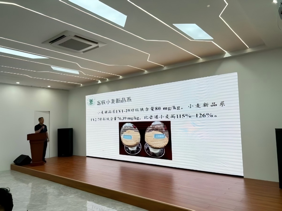 调研期间,4位老师先后前往山东种业集团莒县有限公司、雪润蓝莓合作社、库山中药材种植基地,实地查看育种车间与各类作物种植现场,详细了解莒县农业生产现状与技术需求。在随后的交流环节中,杨洪兵教授讲解团队“作物新种质创制及应用(小麦、大豆、荞麦)”与“果蔬绿色防控技术”成果;高婷副教授分享“中药的‘基因密码’与‘化学指纹’——分子调控与双技术鉴定在黄芩等药材中的应用”技术。现场还展示了分子育种团队带来的4个系列9份的小麦、大豆及农作物良种新种质,与会企业和农技站代表围绕作物新品种推广、病虫害防治等问题与团队老师深入座谈。老师们结合莒县当地气候、土壤特点,逐一解答疑问,重点介绍新品种适应性强、高产、抗病虫害的优势,引发广泛关注,不少代表当场与团队建立联系,邀请其到乡镇和企业开展技术指导。